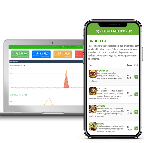 Nosso cardápio digital roda em qualquer disposítivo.
